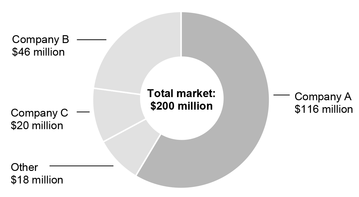 Don’t use a pie chart with more than five segments. If there are more than five, combine the smaller and less significant segments to create the fifth slice and label it “other”. Alternatively use a stacked bar chart instead.