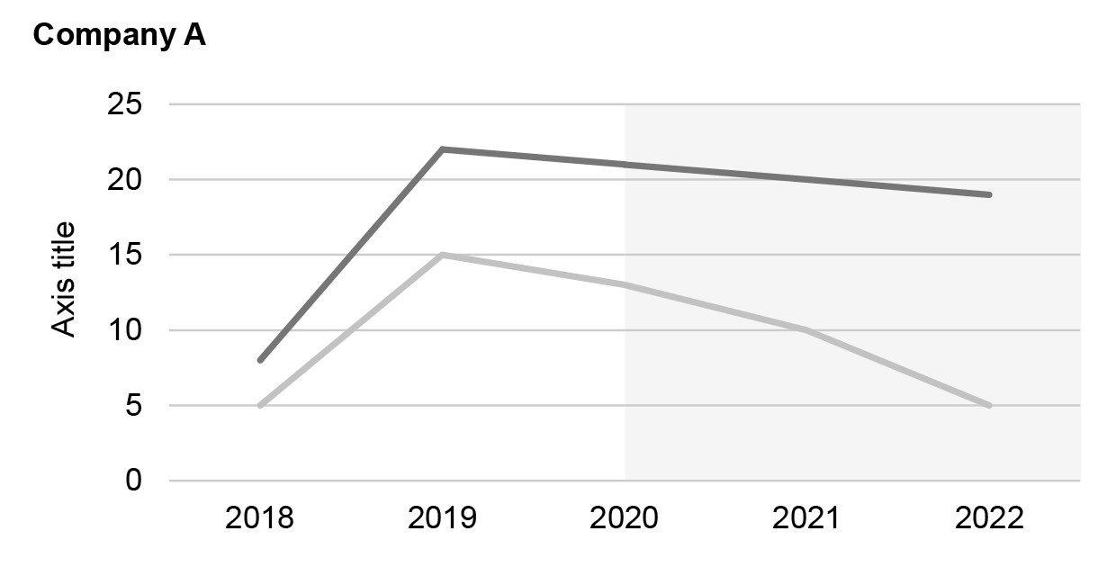 Use comparable scales when contrasting two or more sets of data in different ranges. The ranges of y-axis on both charts should represent the same percentage change.