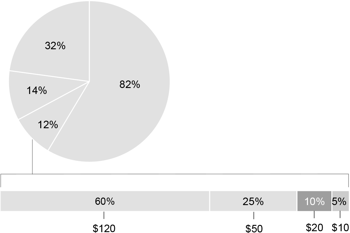 Never breakdown one segment of a pie by showing another pie. Always use a bar chart instead of another pie.